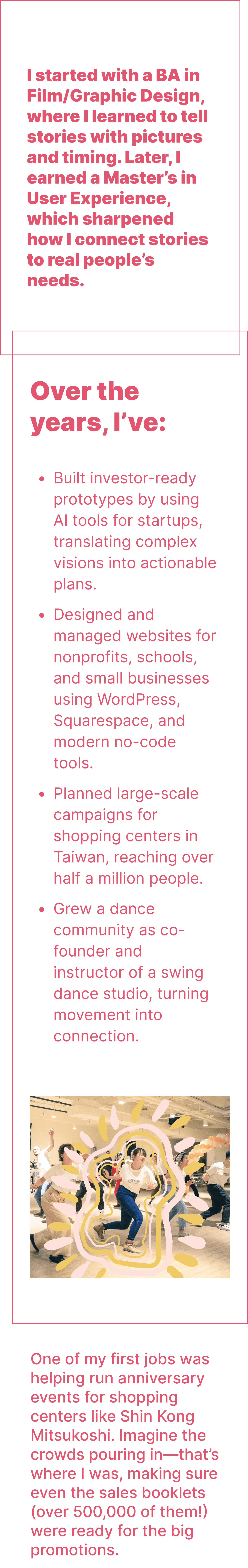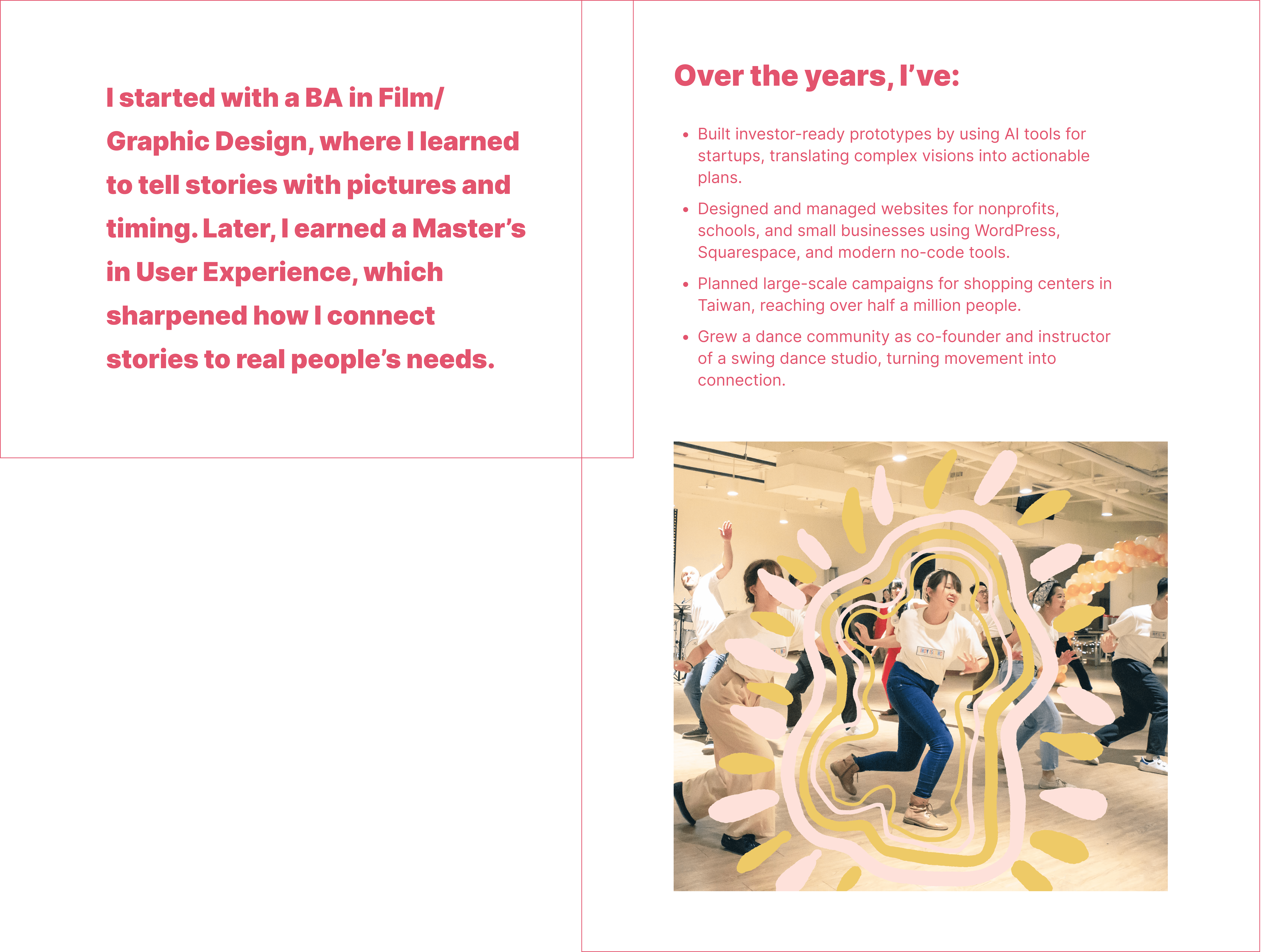 Spent 5 years as a full-time dance instructor and event organizer—building community through swing dance.